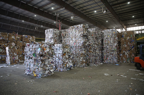 After recyclable materials are sorted by type, they are loaded onto waiting semi trucks. From there they are transported to companies to be reused and made into new products.